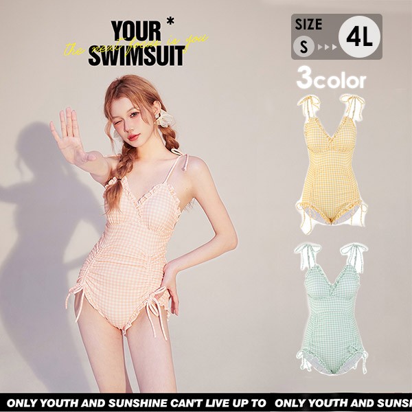 ワンピース水着 フリル リボン ワイヤーなし パッド付 無地 着?せ 体型カバー ぽっちゃり シンプル かわいい