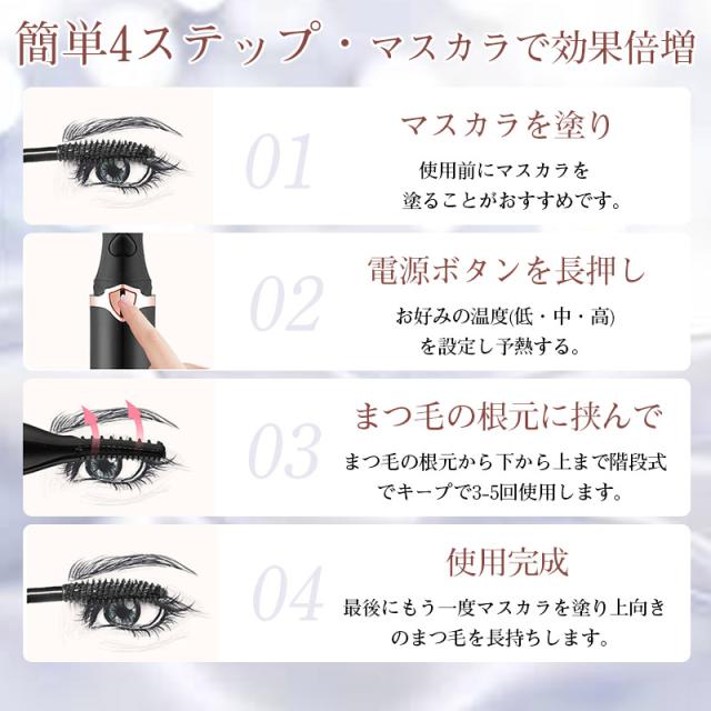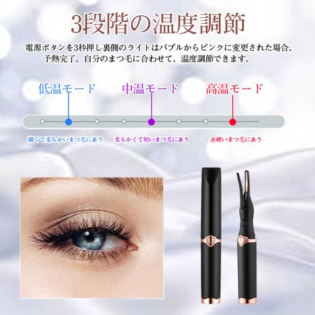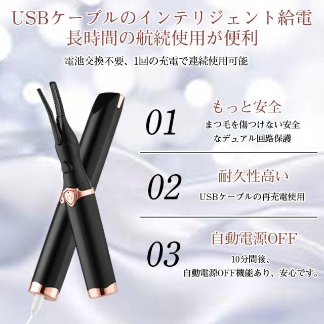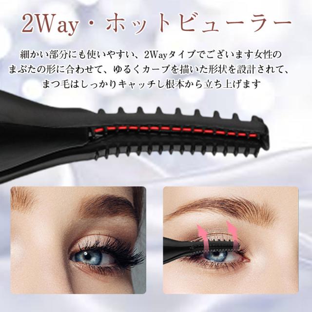 【最新2in1】ホットビューラー 充電式 usb まつげカーラー まつげ まつ毛 カール 24時間キープ 上向き 火傷防止 自動OFF 3段階温度