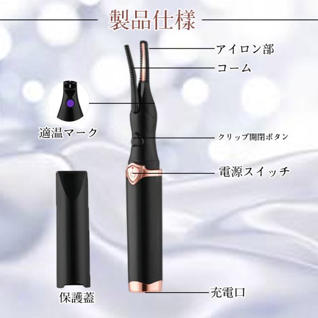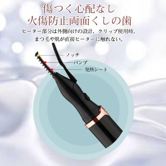 ホットビューラー USB充電 まつげカーラー まつげ カール 24時間キープ 上向き 火傷防止 自動OFF 3段階 予熱 カールアップ