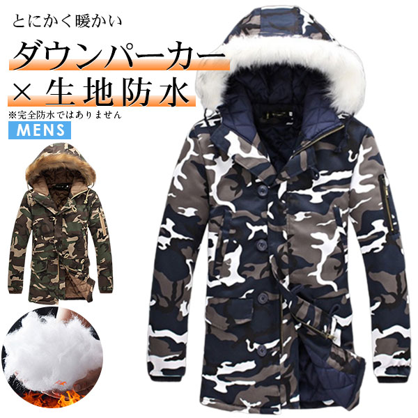 ダウンコート メンズ ロングコート 迷彩柄 パーカー アウター 中綿 軽量 防寒着 大きいサイズ 中綿入り 通勤 通学 冬物 ミリタリー