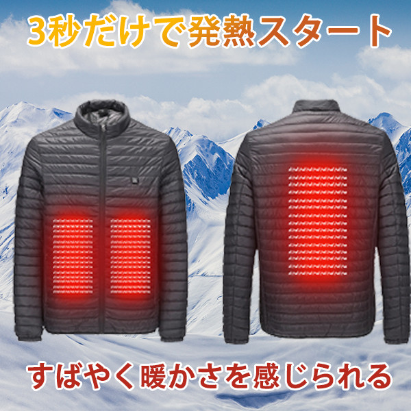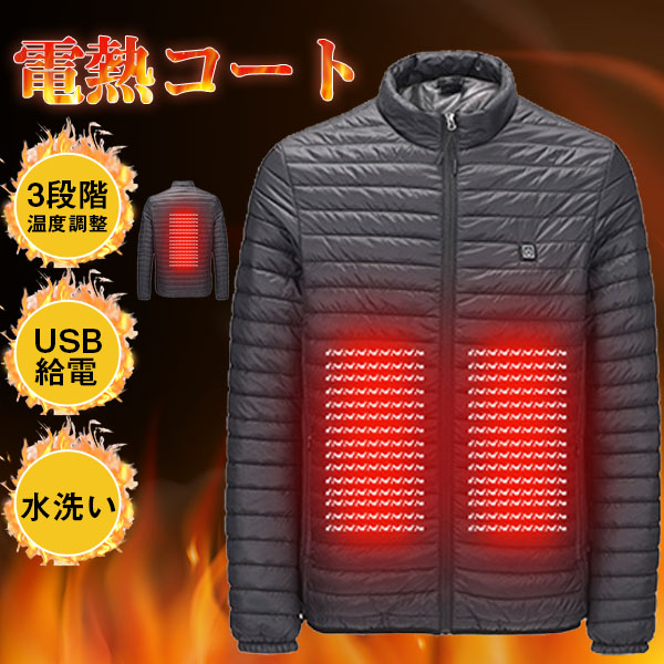 電熱ジャケット メンズ ヒーター内蔵 電熱ウエア ダウンジャケット 立ち襟 USB 中綿ジャケット 極暖 速暖 登山 アウトドアウエア 防寒 通勤