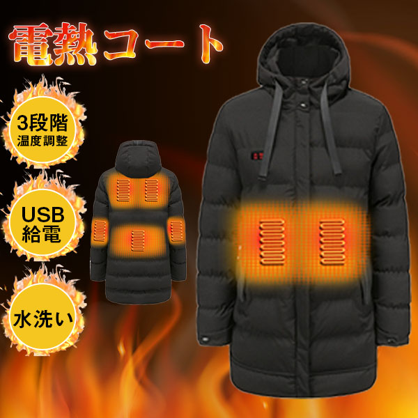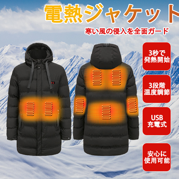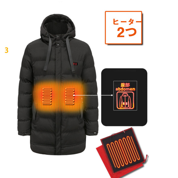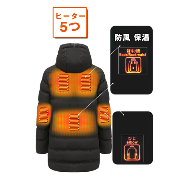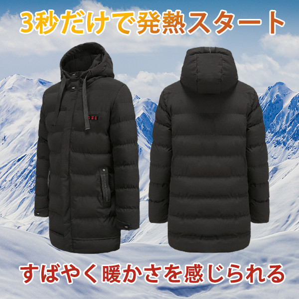 電熱ジャケット メンズ ヒーター マウンテンパーカー ヒーター7つ 中綿ジャケット ロング丈 極暖 速暖 登山 アウトドアウエア 電熱ウエア