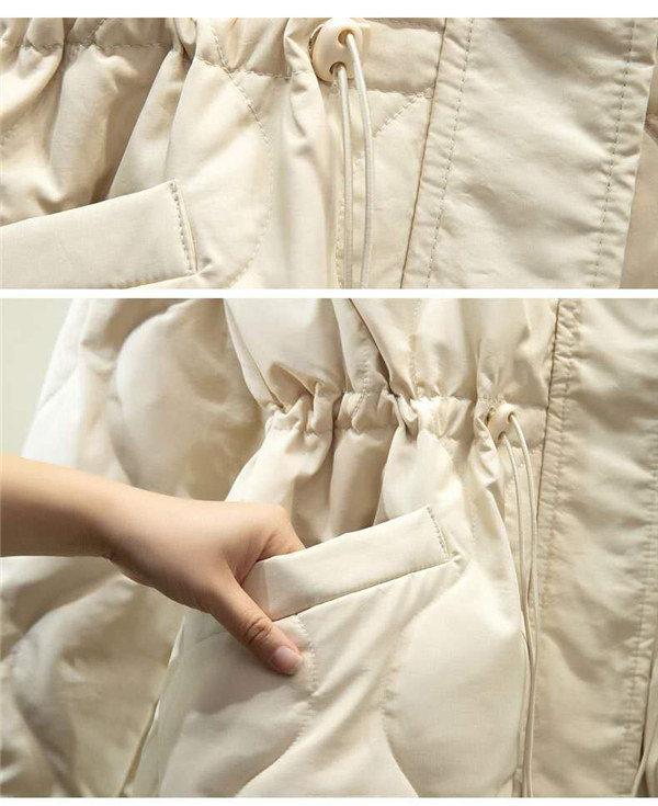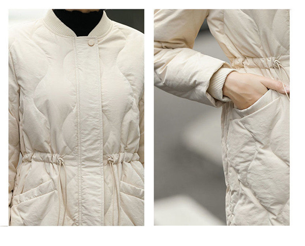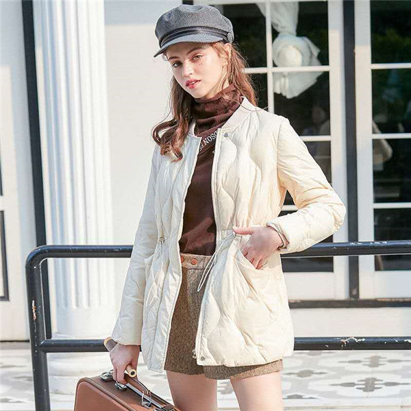 高品質ダウン素材を使用して、軽量で暖かくて防風防寒。