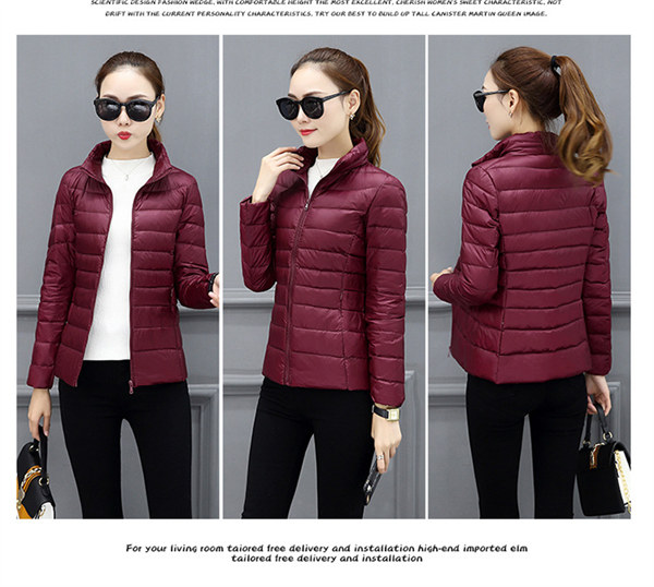 高品質ダウン素材を使用して、軽量で暖かくて防風防寒。