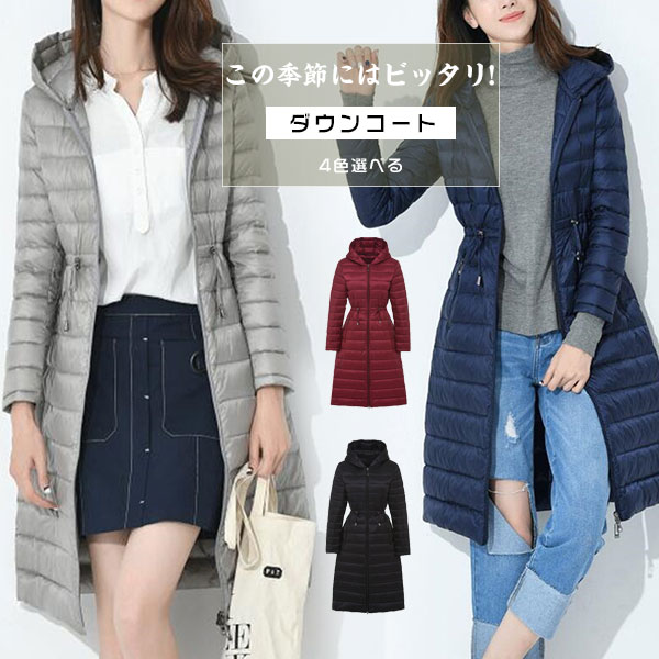 ダウンコート ロング コート レディース 防寒 軽量 フード付き 高品質 ダウン アウター ダウンジャケット キルティング 暖かい ライトダウン