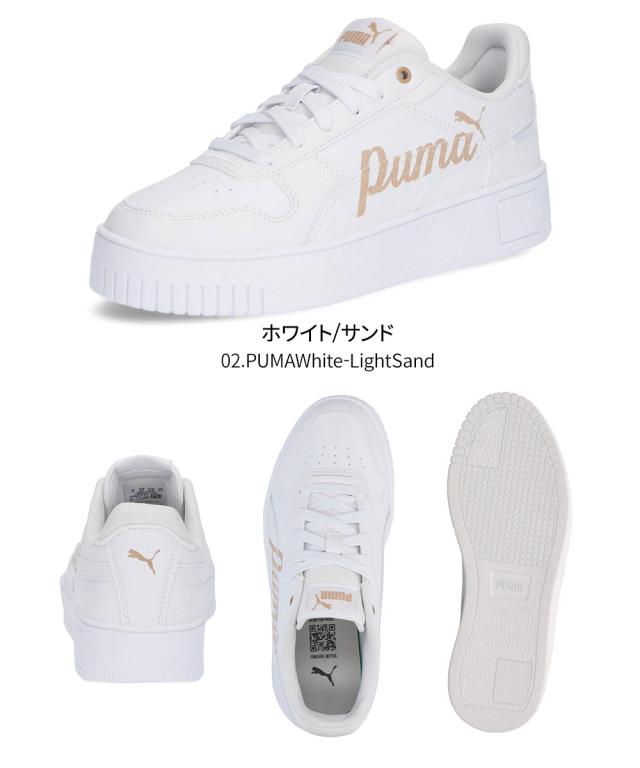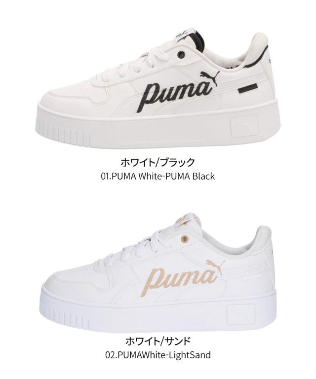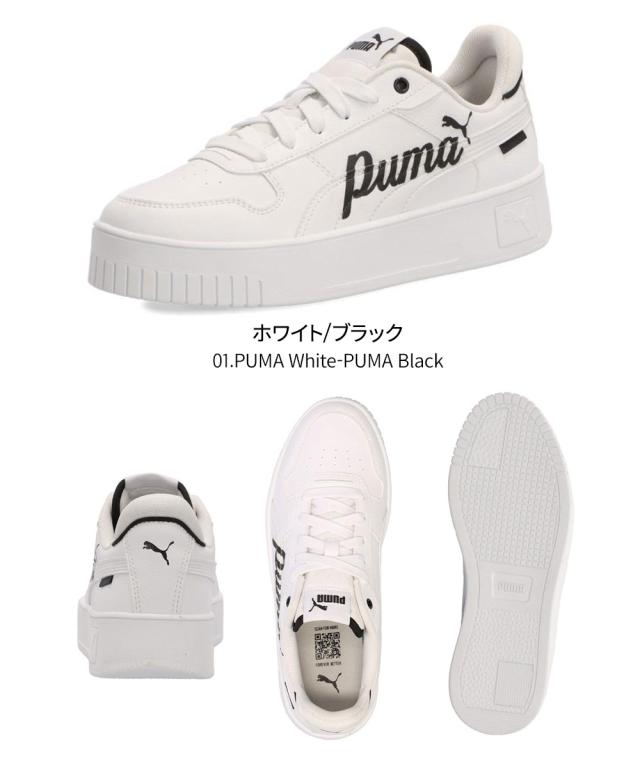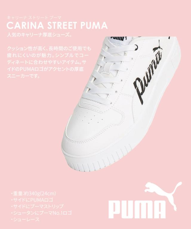 プーマ スニーカー レディース 厚底 ウィメンズ キャリーナ ストリート プーマ ローカット 白靴 コートスニーカー テニス ホワイトスニーカー 脚長効果 通学 紐 プーマキャット ロゴ ホワイト ブラック PUMA carina street puma 400275