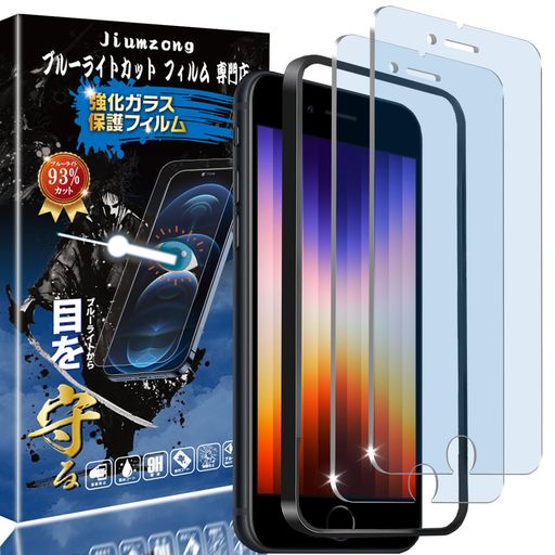 【ブルーライトカット 93%】【目の疲れ軽減】IPHONE SE3 第3世代/SE2 第2世代 用の ガラスフィルム IPHONE8/IPHONE7/6/6S 用の 液晶保護 フィルム 保護ガラス レンズ保護フィルム