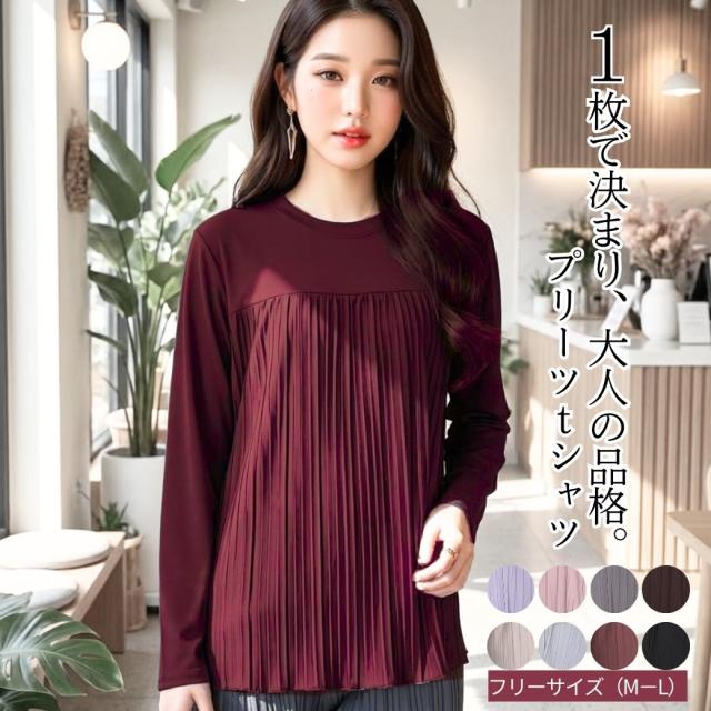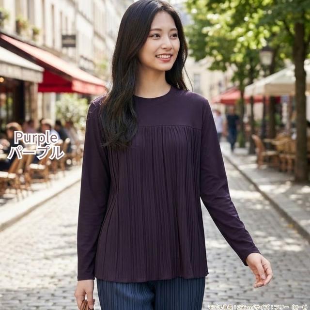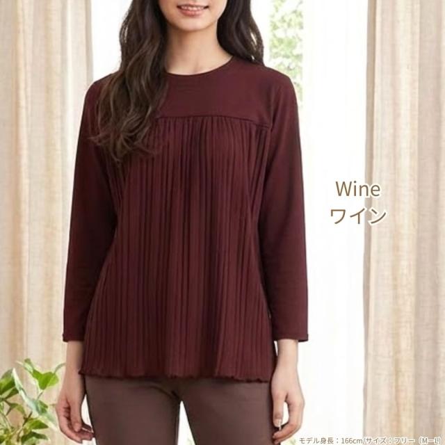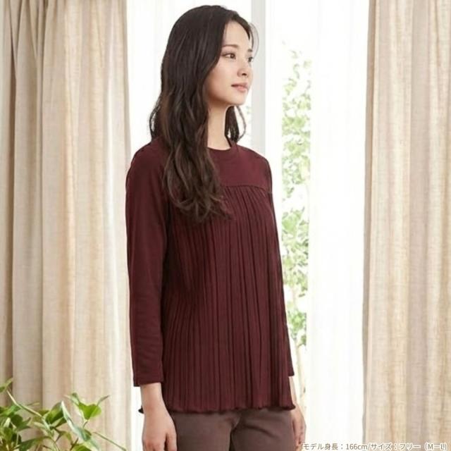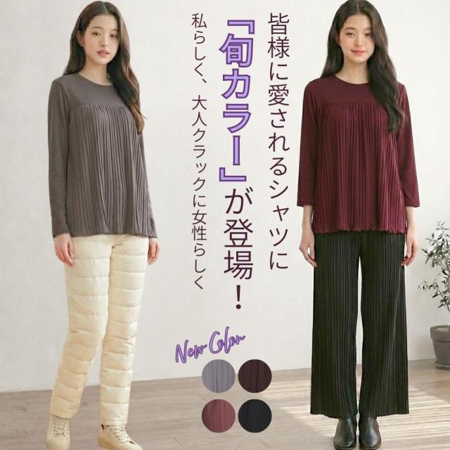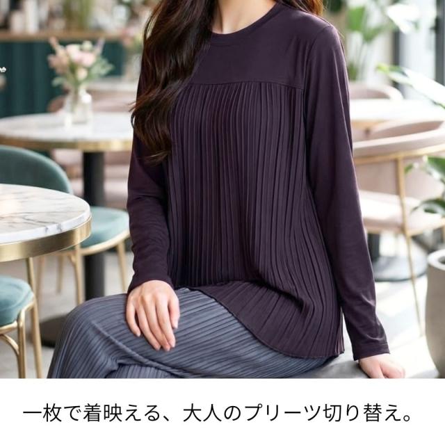 シニアファッション レディース トップス 上品 プリーツtシャツ 長袖/7分袖 秋 涼しい 送料無料 ミセス 80代 0代 プレゼント おばあちゃん 人気
