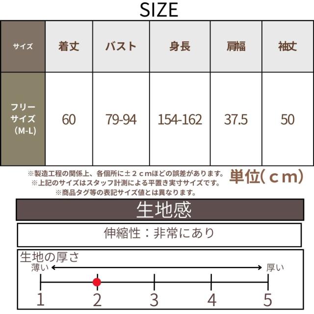 ■カラー 秋新色モカ・パープル・ワイン・ブラック・ ラベンダー・ピンク・ベージュ・ライトグレー ■サイズ ゆったりフリーサイズ(M-L) 着丈60cm バスト79-94cm 肩幅37.5cm 袖丈50cm ※サイズは製品によって多少の誤差が御座いますご了承くださませ ■素材 ポリエステル95%ポリエステル5% ■特徴 伸縮性抜群でストレッチ素材。着脱簡単で動きやすい ITY素材で糸の強度が高く、素肌のようなやわらか触り。 型崩れが少なく、美しいシルエットを保ち、乾きが早くシワになりにくい 着回し抜群。上品でシンプルなデザインなのでどんなボトムスにも合わせやすい ■注意事項 ■素材の特性上、お洗濯やクリーニングにより多少の縮みやねじれが生じる場合もございます。 ■商品の撮影には最大限注意を払っておりますが、閲覧時のモニター環境によりましては実際の商品と若干違うお色味に映ることもございます。