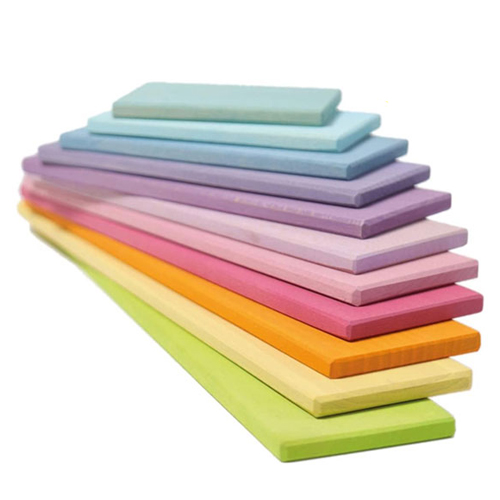 「グリムス パステル ビルディングボード」は、グリムスらしい色鮮やかな木製玩具です。「虹色トンネル ラージ」と互換性のある長方形のボードです。お子さまの想像力で遊び方はいろいろ広がります。