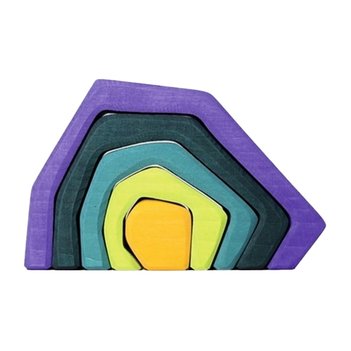 「グリムス アース ミニ」は、グリムスらしい色鮮やかな木のおもちゃです。地球をモチーフにした、グラデーションが美しいつみ木です。子どもたちはそのひとつひとつのピースから何かを見立て、新しい表現を作り出すでしょう。