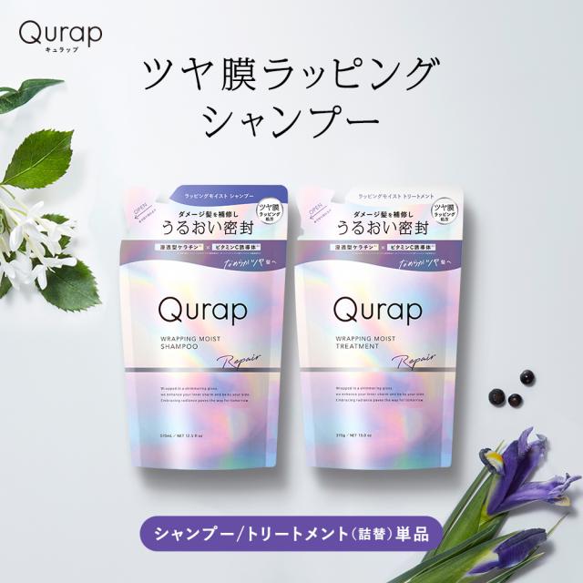 Qurap キュラップ ラッピングモイストシャンプー・トリートメント (詰替)[単品]キューティクルのスキマを埋めるように補修し、なめらかにまとまる髪へ導く〇ツヤ膜ラッピング処方・浸透型ケラチン 開いたキューティクルから髪内部のダメージを補修・ビタミンC誘導体 ツヤ膜に変化して密着ラッピング〇ダメージ補修しながらカラーをキープ ※ラッピング効果による〇華やかさとみずみずしさをまとったフルーティブルームの香り〇あらゆるダメージ髪に[パーマ・カラー] [紫外線による乾燥ダメージ] [くり返す熱ダメージ] [パサつき]シャンプー キュラップ シャンプー 詰め替え ダメージケア