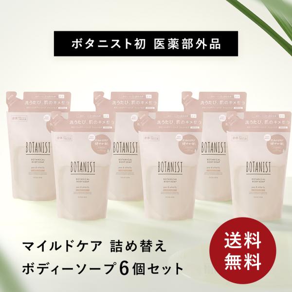 BOTANIST初の医薬部外品 ボタニカルボディーソープ マイルドケア 詰め替え6点セット(詰め替えパウチ6個)「植物の恵みで、洗うたび、肌のキメ整う」にきび・肌あれを防ぐ [有効成分:グリチルリチン酸2K]肌あれを防ぎながら優しく洗い、健やかな肌へ。・乾燥性敏感肌の方 ・優しい洗いあがりが好みの方 ・肌を健やかに保ちたい方