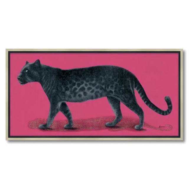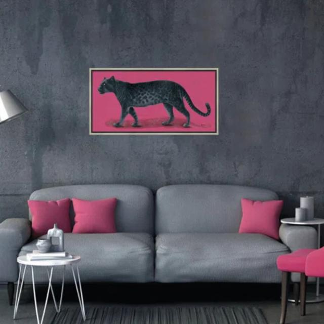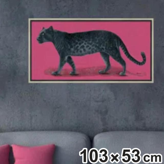 オイル ペイント アート「レッド ブラック」 ( 絵画 絵 アート インテリア 額 額入り 壁掛け 油絵 アニマル 動物 黒豹 ポスター アートフレーム アートポスター ウォールアート パネル 額付き ピンク )