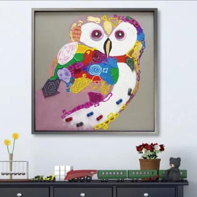 オイル ペイント アート「カラフル オウル」 ( 絵画 絵 アート インテリア 額 額入り 壁掛け 油絵 フクロウ カラフル ポスター アートフレーム アートポスター ウォールアート パネル 額付き )