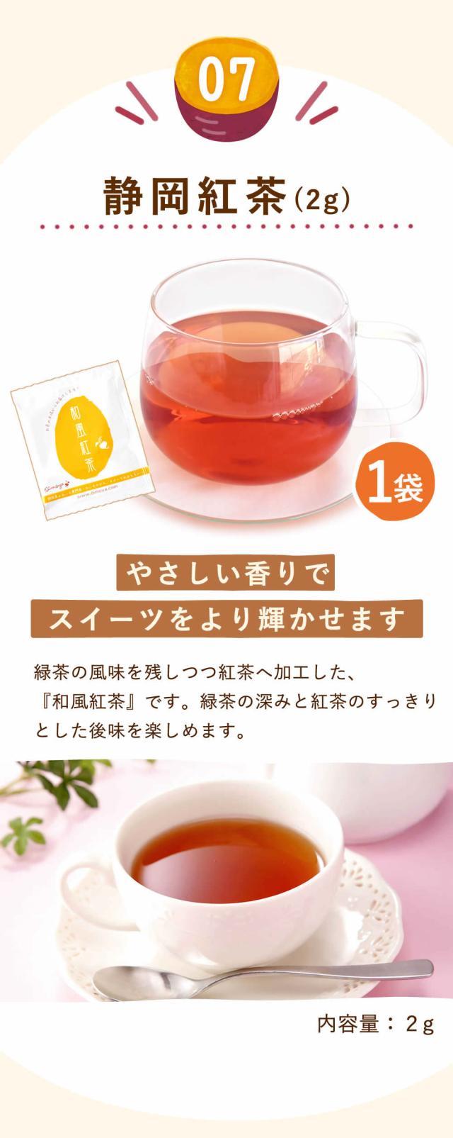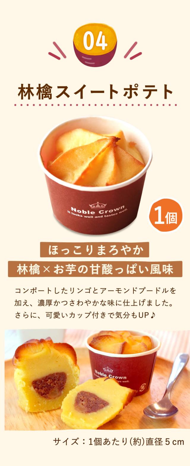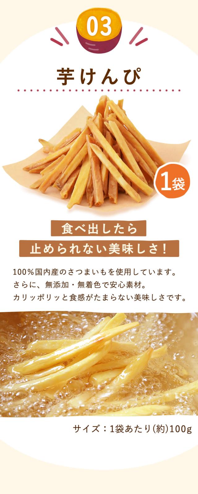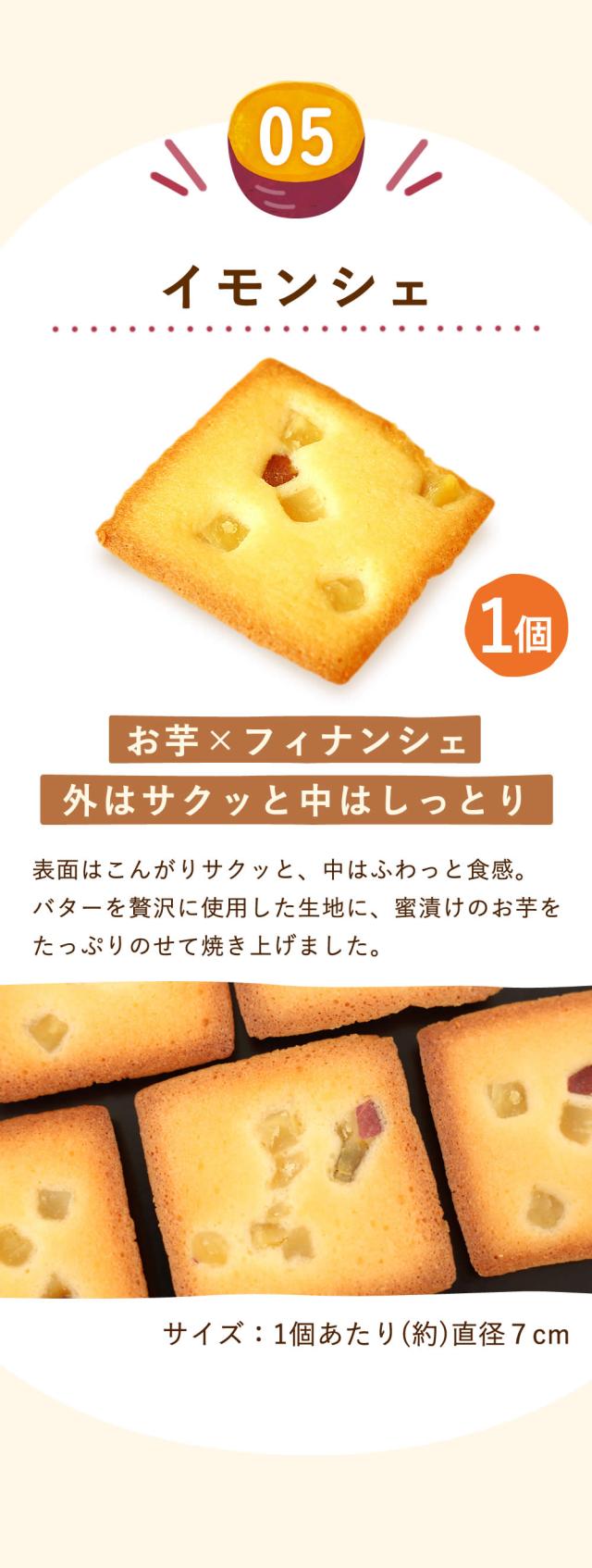 ◆【お芋どら焼き 1個】 1個あたり(約)直径8cm 賞味期限:発送から常温で約20日 原材料:芋入り餡(砂糖、小豆、さつまいもかのこ、還元水飴、水あめ、寒天、食塩)(国内製造)、卵、小麦粉、砂糖、黒糖、植物油脂、はちみつ、水あめ、みりん、麦芽糖、寒天/トレハロース、クロレラ抽出液、膨張剤、乳化剤、香料、(一部に小麦・卵を含む) ※はちみつを使用しておりますので、1歳未満の乳児には与えないでください。 ◆【苺×さつまいものミニバウム 1個】 1個あたり(約) 直径7cm 賞味期限:発送から常温で約20日 原材料:卵(国産)、砂糖、ショートニング、マーガリン、小麦粉、乳等を主要原料とする食品、さつまいも、バター、苺果汁加工品、アーモンド加工品、さつまいもペースト、植物油脂、洋酒/加工澱粉、トレハロース、乳化剤、膨張剤、ソルビトール、香料、着色料(コチニール、ラック、カロチン)、酸味料、(一部に卵・小麦・乳成分・アーモンド・大豆を含む) ◆【芋けんぴ 1袋】 1袋あたり(約)) 100g 賞味期限:製造から常温3ヶ月 原材料:さつまいも(国産)、砂糖、植物油、麦芽水飴 ◆【林檎スイートポテト 1個】 1個あたり(約) 直径5cm 賞味期限:常温で発送から約20日 原材料:薩摩芋(国産)、卵、バター、ファットスプレッド、小麦粉、砂糖、林檎、アーモンドプードル、ココア、蜂蜜、シナモン/グリシン、香料、(一部に卵・小麦・乳成分を含む) ◆【イモンシェ 1個】 1本あたり(約) 直径7cm 賞味期限:常温で発送から約30日 砂糖(国内製造)、バター、さつまいも、卵白(卵を含む)、小麦粉、アーモンド、コーンスターチ/膨張剤(一部に卵・小麦・乳成分・アーモンドを含む) ◆【お芋ドーナツ 1個】 1袋あたり(約) 直径9cm 賞味期限:常温で発送から約20日 原材料:卵(国産)、マーガリン、小麦粉、砂糖、アーモンド、転化糖、乳等を主要原料とする食品、さつまいもパウダー加工品、コーンスターチ/トレハロース、膨張剤、香料、着色料(クチナシ、カロチン)、(一部に卵・乳成分・小麦・アーモンド・大豆を含む) ◆【紅茶 1袋】 1袋あたり 2g 賞味期限:製造から1年(未開封時) 原材料:茶(牧之原市) |