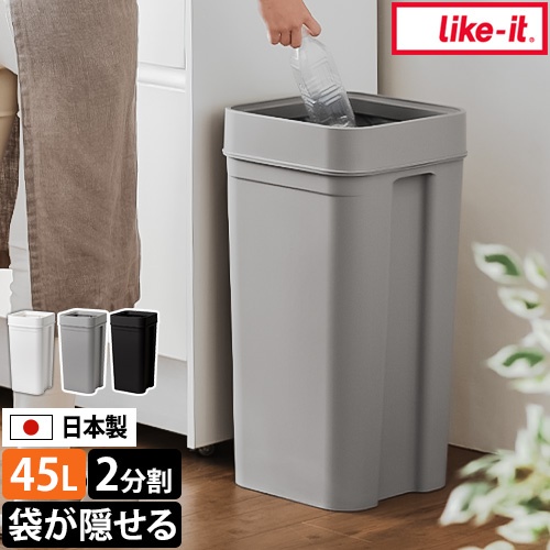ライクイット ゴミ箱 45リットル マルチパーパスビン45 ダストボックス くず入れ おしゃれ 空き缶 大容量 北欧 かわいい ビン ペットボトル キッチン シンプル 洗面所 フタ なし リビング 四角 分別 中身 袋 見えない like-it