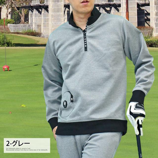 M~XXL 新作 ゴルフウェア メンズ ハーフジップ スタンドネック トレーナー 長袖 GIORNO SEVEN ジョルノセブン トップス プルオーバー 立体ポケット おしゃれ スポーツMIX カジュアル 秋冬 春夏 送料無料