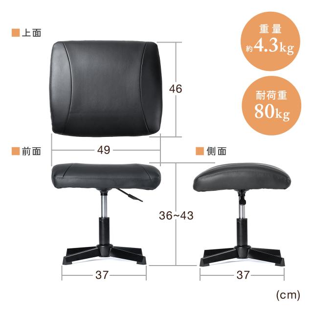 オットマン 足置き台 フットレスト 高さ調節 固定脚 幅広 デスク下 ソフトレザー ブラック[150-SNCOT23]