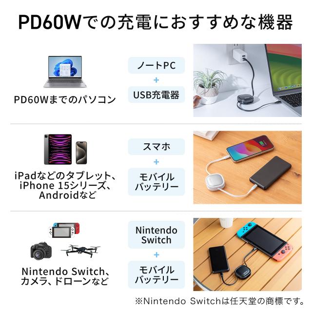 ■USB PD(USB Power Delivery)仕様:最大DC20V/3A(60W)