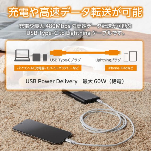 いたずら好きのワンちゃん・ネコちゃんがいるおうちに。噛んでも断線しにくい、耐久性と安全性に優れたUSB Type-C(TM) - Lightningケーブルです。ステンレス製の外皮がケーブル内部をしっかり保護。ペットへの安全性にも配慮した設計です。USB Power Deliveryに対応。MFi正規認証品です。