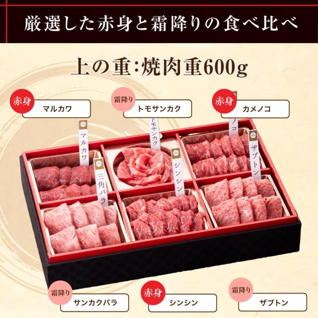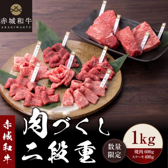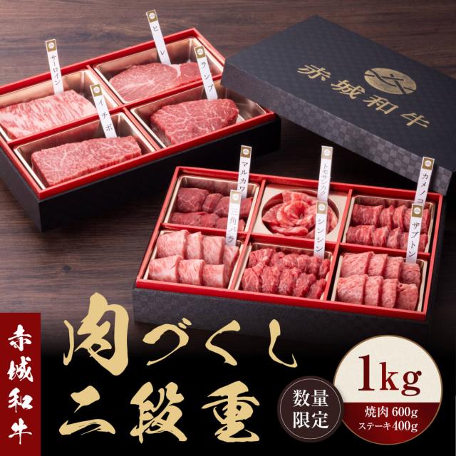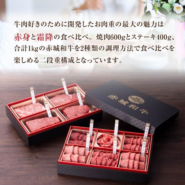 肉 ギフト 赤城和牛 肉づくし 二段重 1kg 冷凍 和牛 牛肉 焼肉 600g 6種類 各100g ステーキ 400g 4種類 各100g