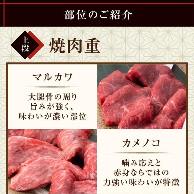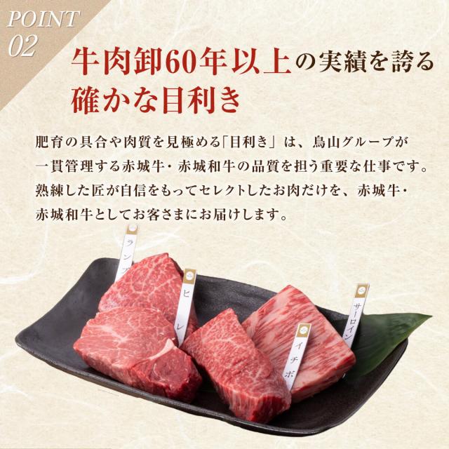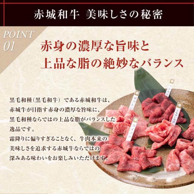 ■内容量 | 焼肉 600g(赤城和牛マルカワ・赤城和牛カメノコ・赤城和牛シンシン・赤城和牛トモサンカク・赤城和牛ザブトン・赤城和牛三角バラ)/ステーキ 400g(赤城和牛サーロイン・赤城和牛ヒレ・赤・和牛イチボ)