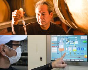 ![]() | 五感を駆使した蔵人の技と機械による品質管理 焼酎造りの職人である蔵人達は、五感を研ぎ澄ませて酒造りを行い、匂いや手触り、味や音など五感を駆使して菌と向き合い日々対処しています。 加えて麹菌や酵母菌が狙った通りに繁殖、発酵するように衛生管理、温度管理を徹底しています。機械で正確に管理することで安定した品質の焼酎を造ることが可能となるのです。 |