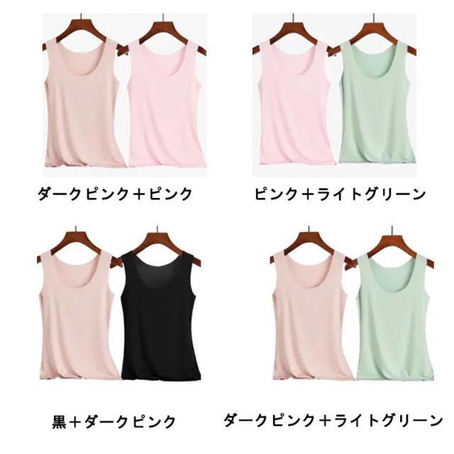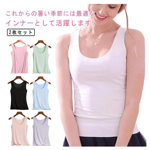 シームレス タンクトップ 大きいサイズ 接触冷感 2枚セット レディース 冷感 下着 インナー 涼感 接触冷感 吸水速乾 肌着 レイヤード Uネック 見えない 無地 シンプル 薄手 ひんやり ブラ紐 大きいサイズ キャミソール 重ね着 送料無料