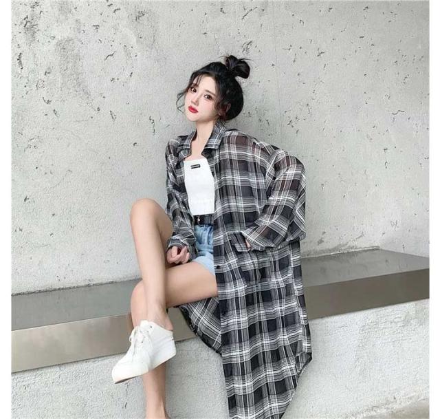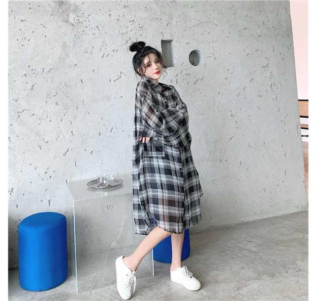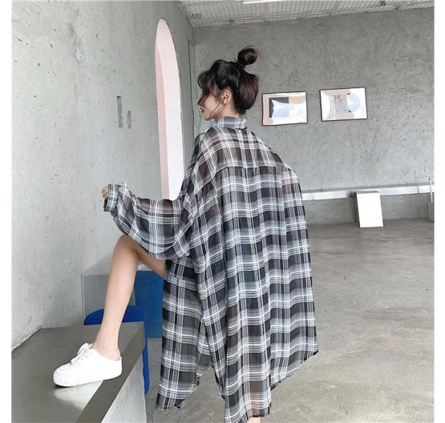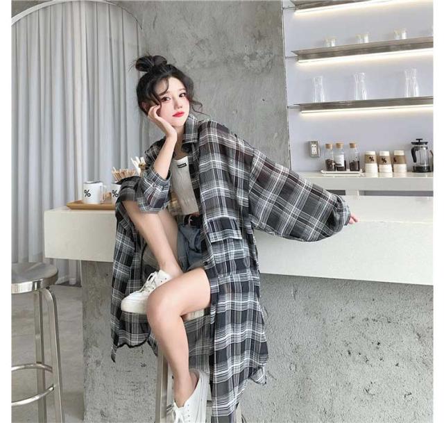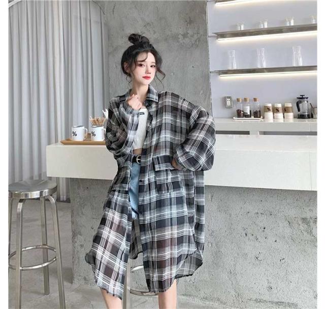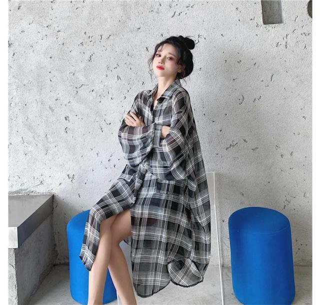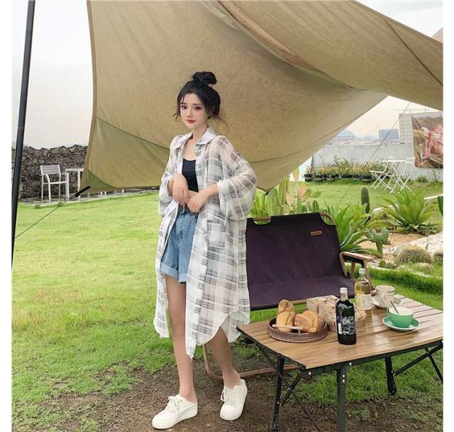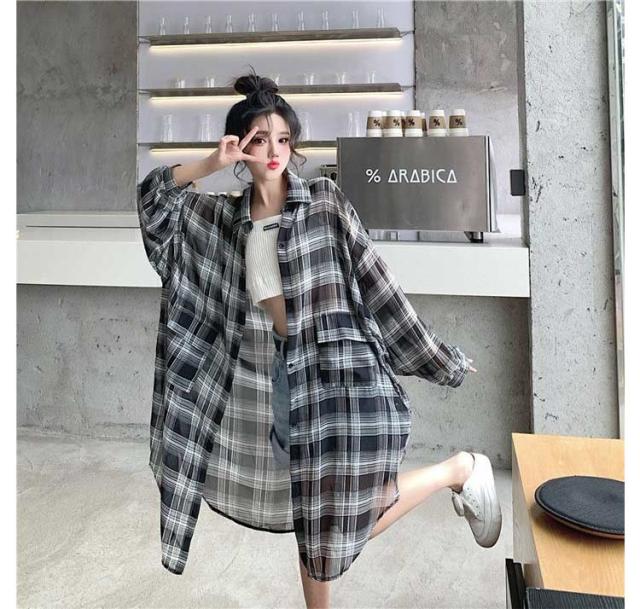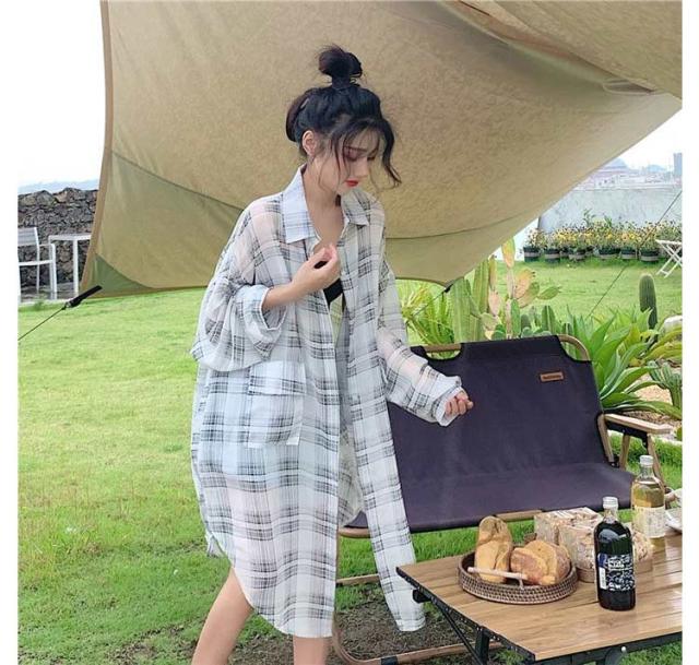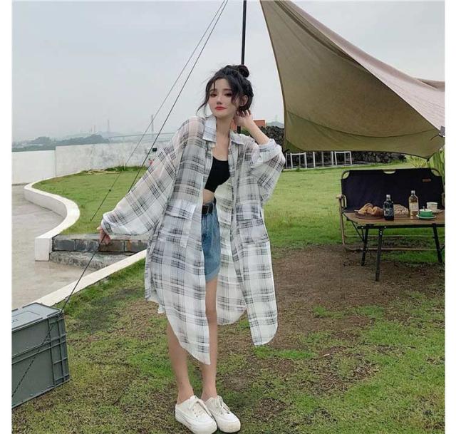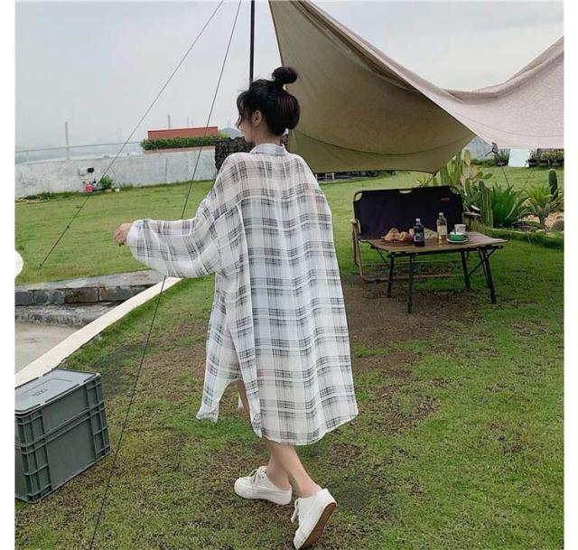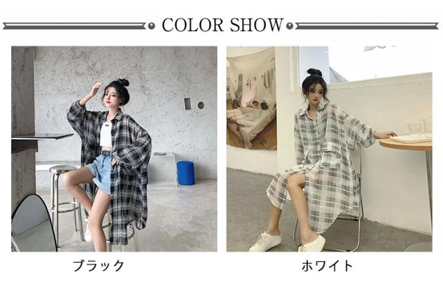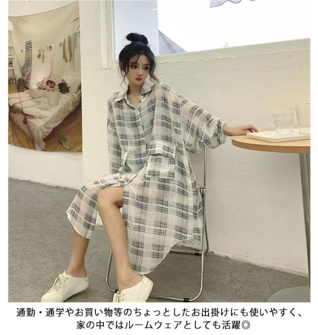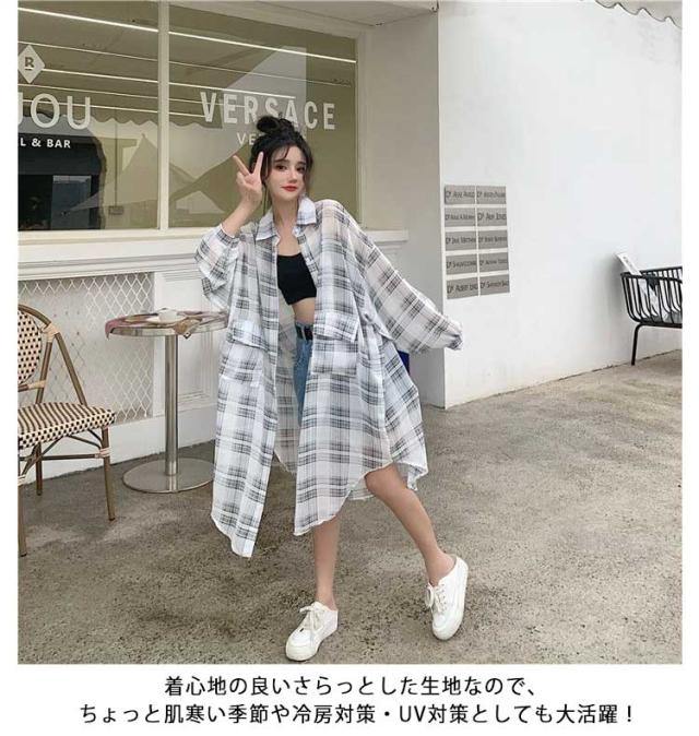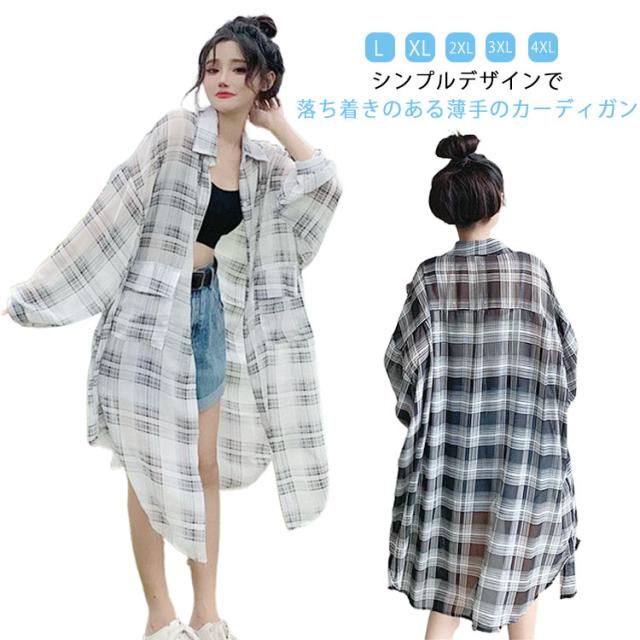 シャツカーディガン ロング レディース チェック柄 夏 ロングカーディガン 長袖 サマーカーディガン UVカットカーディガン 日焼け防止 紫外線対策 羽織り トップス 体型カバー 薄手 大きいサイズ カジュアル