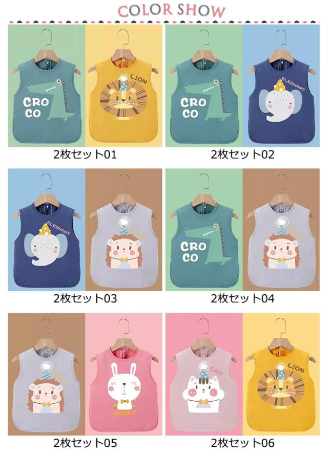 スモック幼稚園 お食事エプロン 保育園 子供 エプロン 2枚セット こども お食事エプロン 90 100 110 120 130 140cm 防水 幼児 ロングスモック スモック 防水エプロン 汚れ防止 ノースリーブ 可愛い キッズ ベビー 女の子 男の子 袖なしスモック 子供服 ベビー