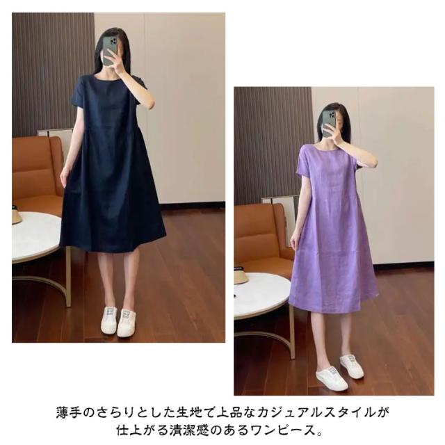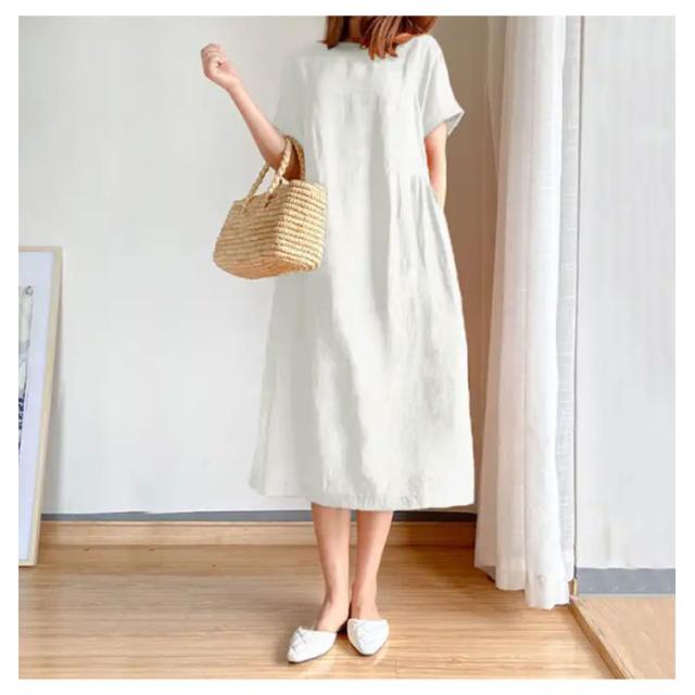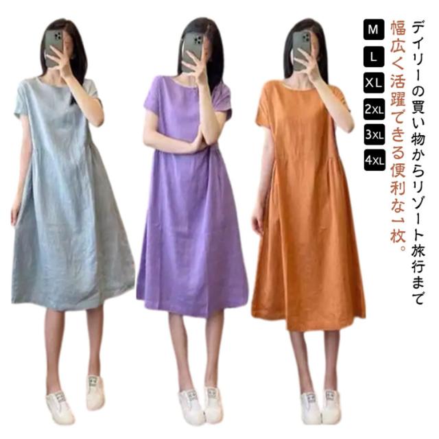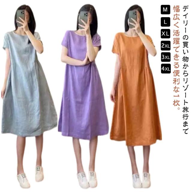 ワンピース ロング マキシ レディース 綿麻 シャツ リネン風ワンピース 夏 ひざ下 ロングワンピース 半袖 コットンワンピース Aライン 大人可愛い 着痩せ きれいめ 森ガール 体型カバー エレガント 送料無料