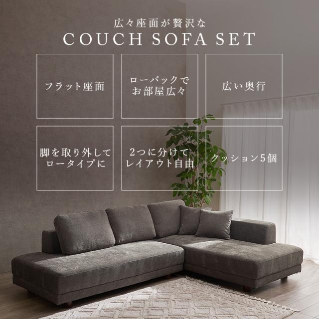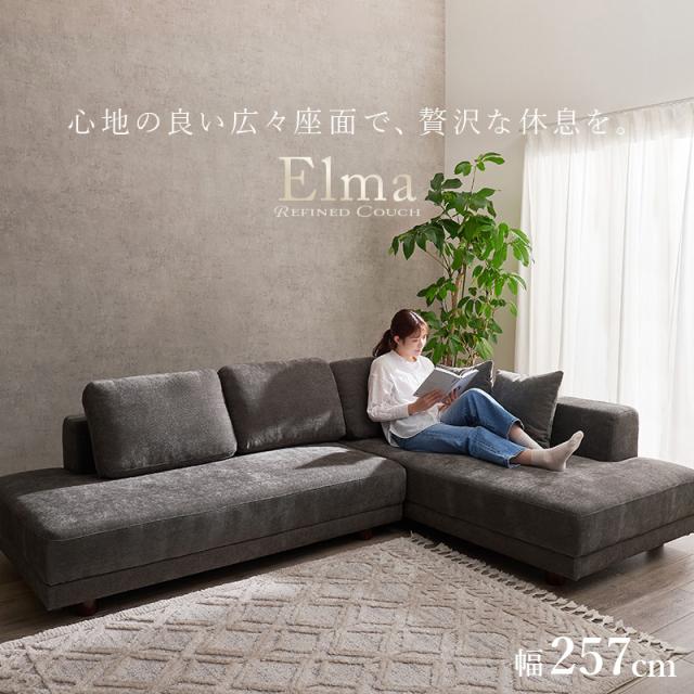 開梱設置付き ソファ ソファー カウチソファ 3人掛け L字 おしゃれ 4人掛け ローソファー 肘なし ごろ寝ソファー コーナー カウチ 北欧 エルマ フロア アームレス ファブリック 硬め モダン 白 ホワイト