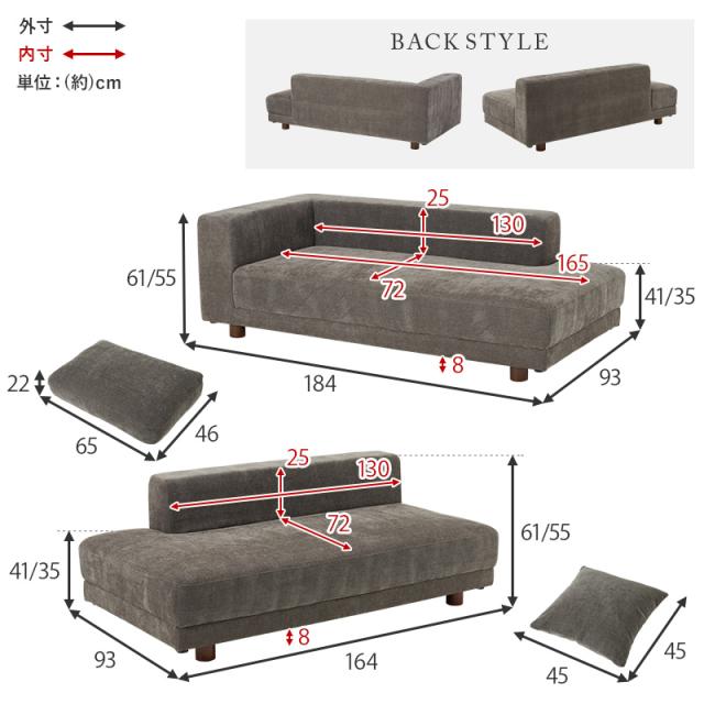 ■カウチソファ:幅184×奥行93×高さ83×座面高41cm