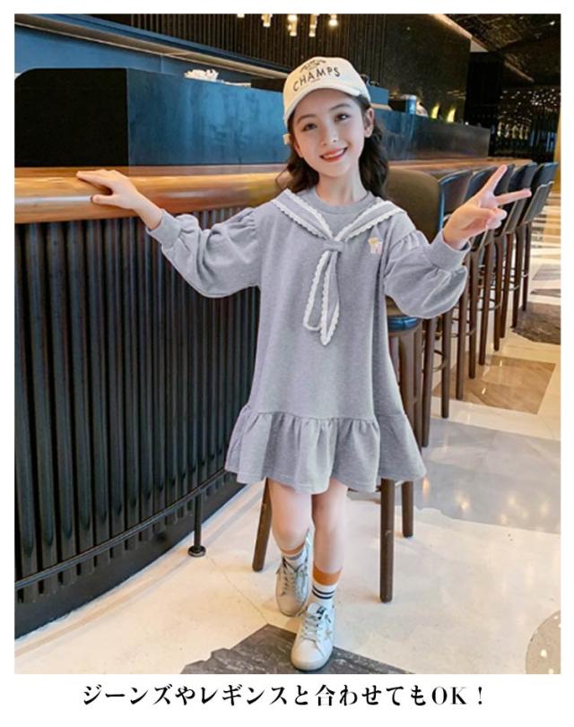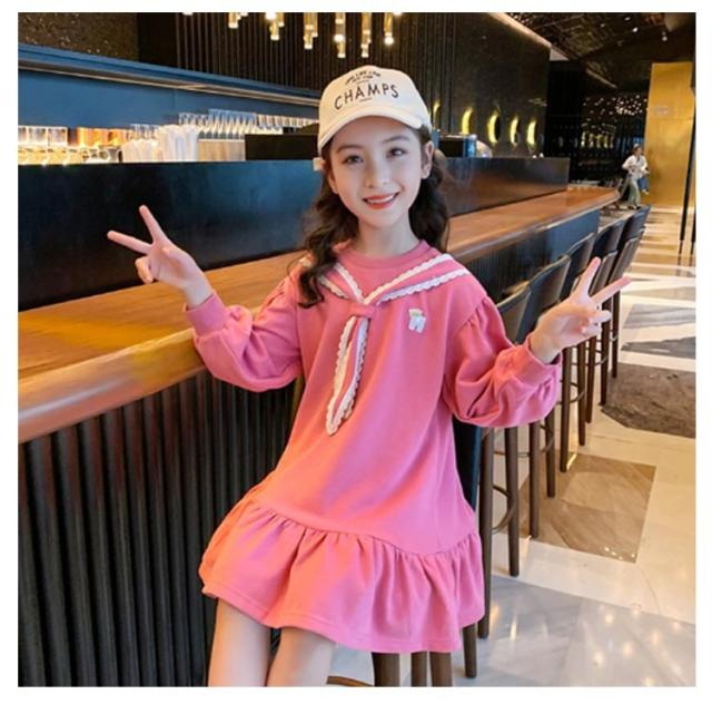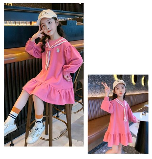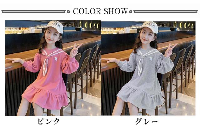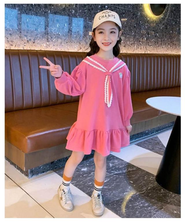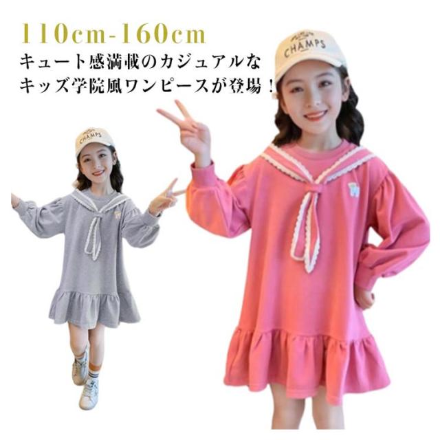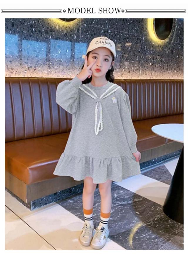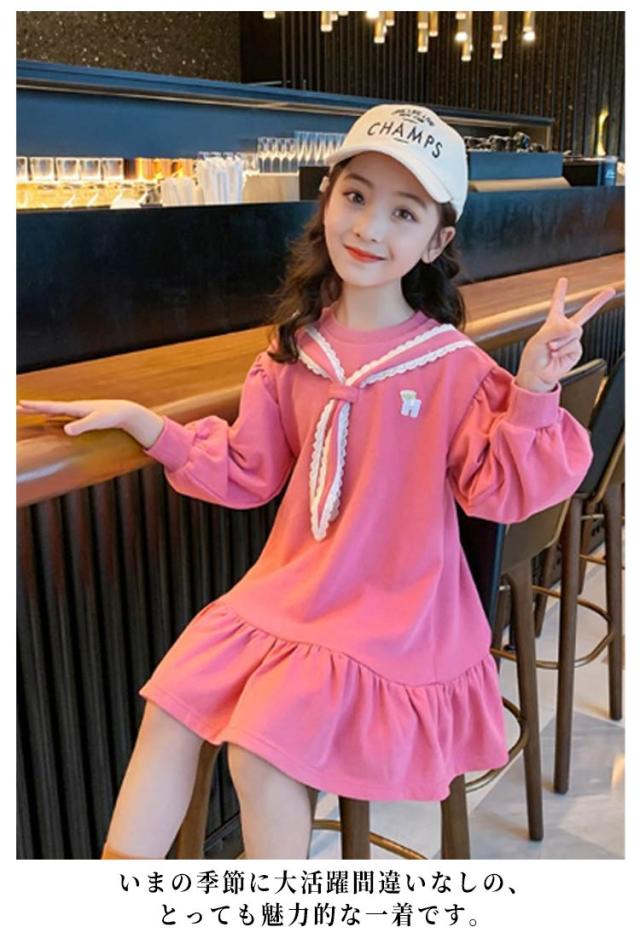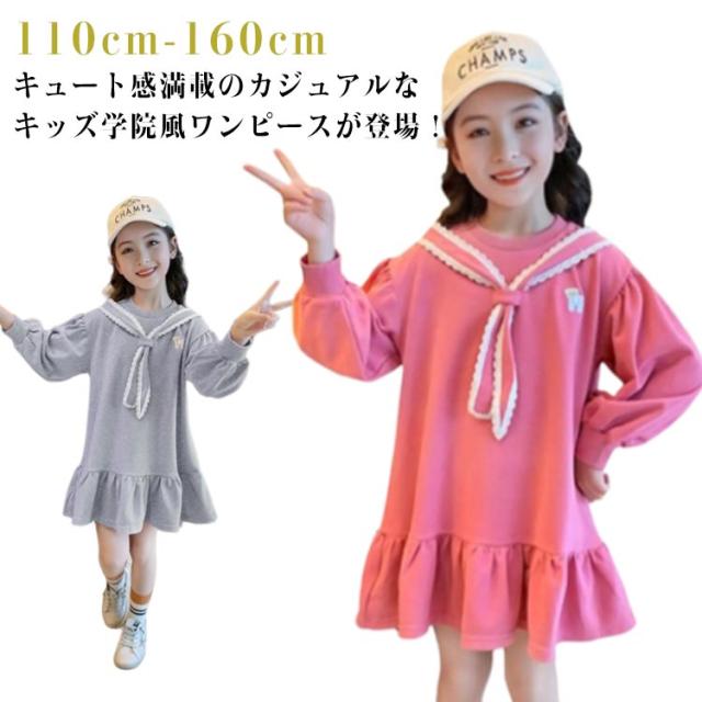 子供服 長袖 ワンピース マリン風 キッズ 女の子 ワンピース 春 秋 ワンピース 子供服 学院風 Aライン 可愛い 女児 発表会 卒園式 入学式 森ガール カジュアル 普段着 入園
