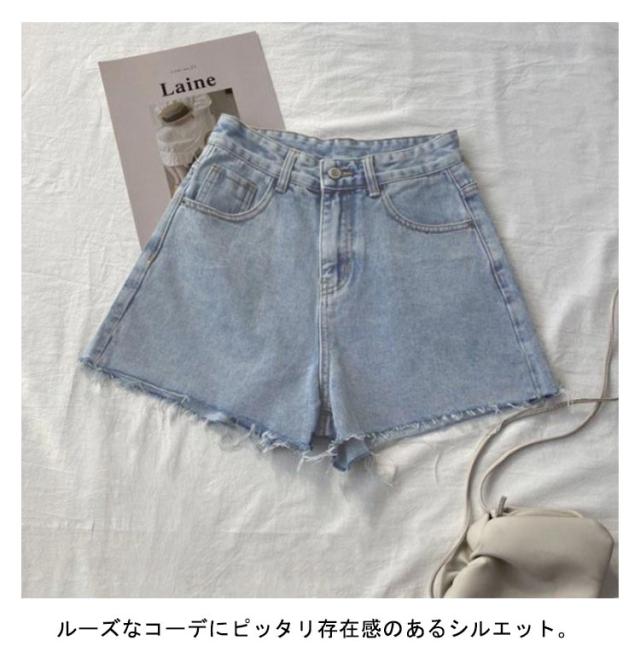 | どんなスタイルにも合わせやすいシンプルなデザインショートパンツ ハイウエストデザインで美脚効果も絶大◎ 夏の必需品!コーデに取り入れるだけでこなれた印象がUPするデニムショートパンツ。 ルーズなコーデにピッタリ存在感のあるシルエット。 | |
