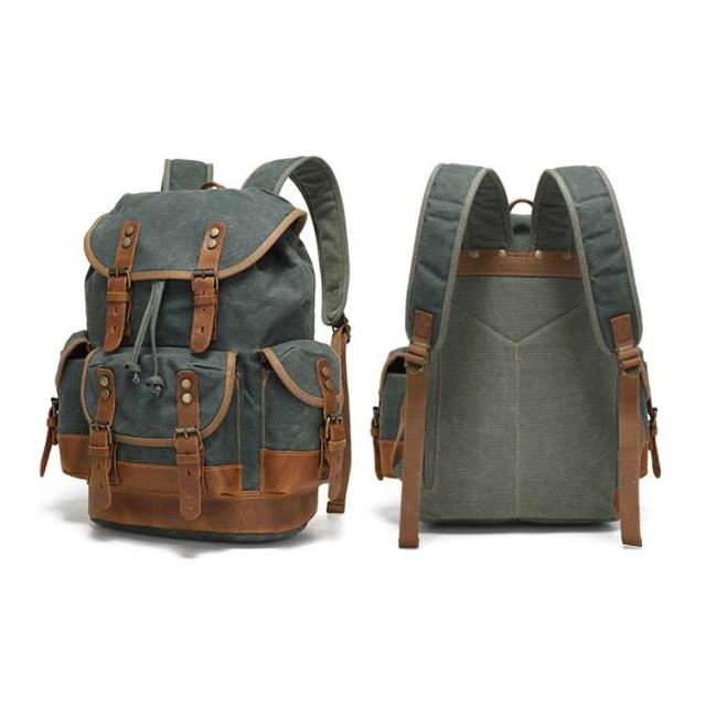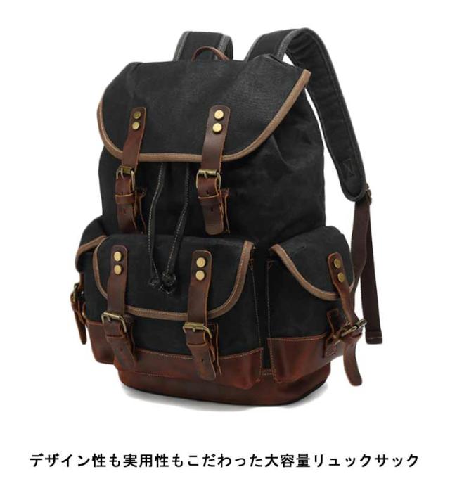 男女兼用 ミリタリーリュック 帆布 リュック キャンバス ビンテージ加工 防水 撥水加工 欧米風 バックパック リュックサック カッコイイ トラベル 旅行 バッグ レザー 大容量 A4 収納可 メンズ レディース 丈夫 通勤 通学 鞄 父 敬老の日 プレゼント ギフト 送料無料