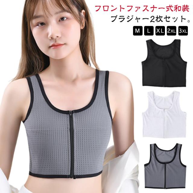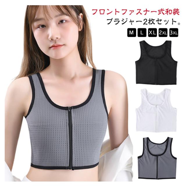 2枚セット 和装ブラジャー フロントジップ 和装用 ブラジャー 和服 和装 補正 下着 肌着 レディース 胸を小さく見せるシャツ ブラトップ 胸つぶし なべシャツ 男装 コスプレ インナー 揺れない スポーツブラ 和装ブラ ジュニア 大人 バスト押さえ 胸サポータ 通気性 速乾