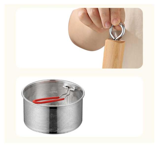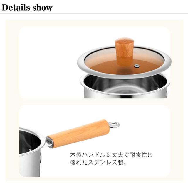 | サイズについての説明 | 鍋直径20cm 高さ10.5cm ハンドル長さ18cm こし器直径16cm 高さ10cm ハンドル長さ16cm |