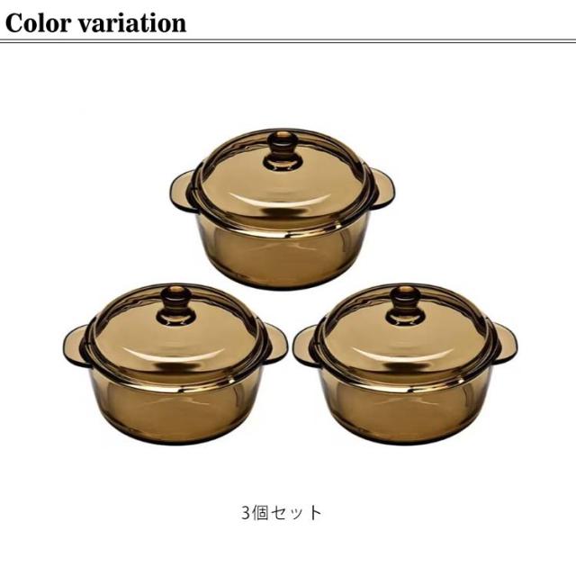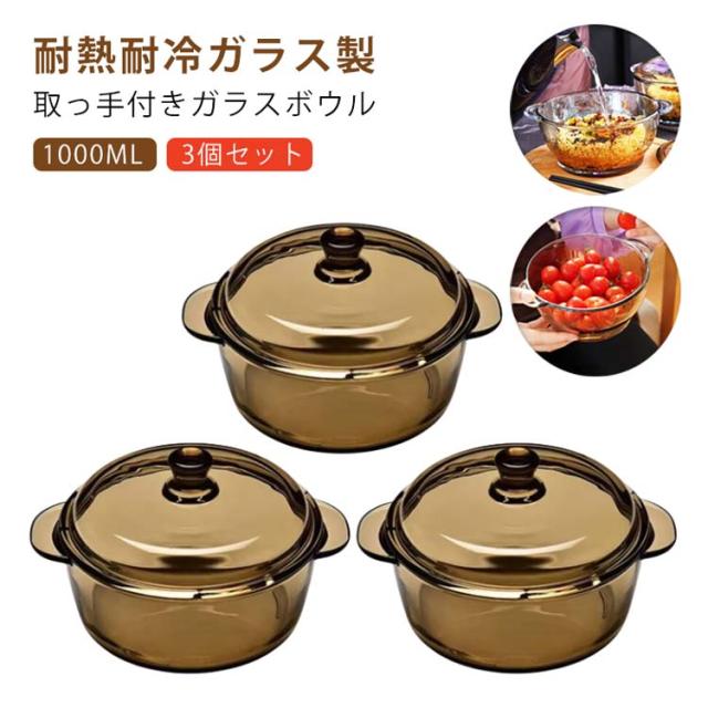 3個セット 耐熱 ガラス ボウル 取っ手付き 両手鍋 蓋付き 1000ml 14cm ガラス鍋 耐熱ガラス 鍋 なべ 卓上鍋 深型 グレー 北欧 おしゃれ スープポット ソース鍋 ガラス蓋 冷蔵庫 電子レンジ対応 食洗機対応 クリア 透明 ガラスポット ガラスボウル ガス火直火不可