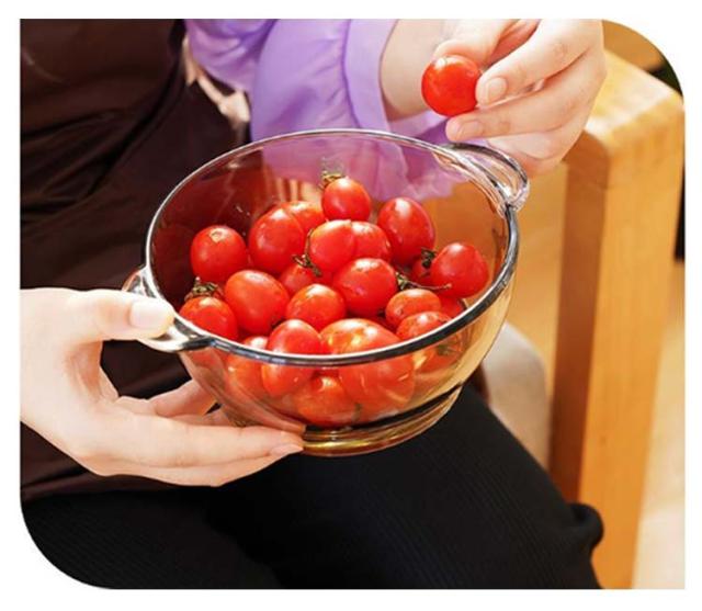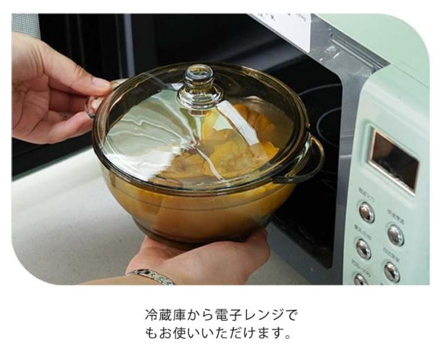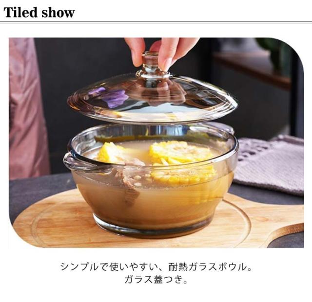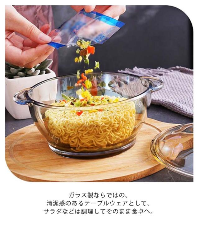 | 耐熱耐冷ガラス製取っ手付きガラスボウル【1000ml】【3個セット】 シンプルで使いやすい、耐熱ガラスボウル。ガラス蓋つき。 野菜を切って冷蔵庫に保管しておいて、食べたいときにレンジで蒸せば、簡単にホットサラダの出来上がり!余った料理もそのまま保存もできます。 食材の色やニオイもつきにくく、お手入れもラクチンです◎ ガラス製ならではの、清潔感のあるテーブルウェアとして、サラダなどは調理してそのまま食卓へ。 冷蔵庫から電子レンジでもお使いいただけます。 | |