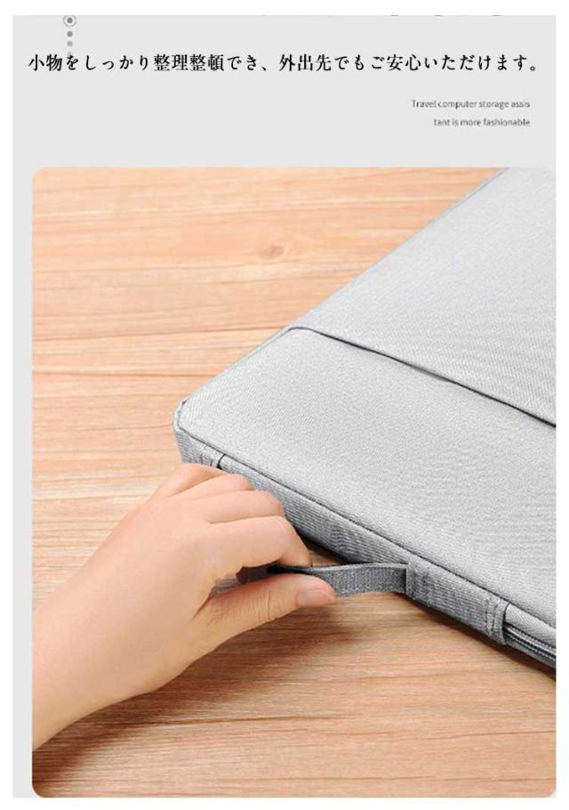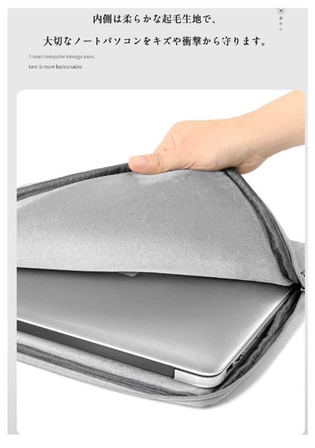 | 軽量で持ち運びに便利!傷も防ぐパソコンケース 表面は撥水性に優れ、高級感のある素材を採用しております。 ノートパソコンはもちろん、周辺機器や小物まで収納できるマルチケース。 内側は柔らかな起毛生地で、大切なノートパソコンをキズや衝撃から守ります。 小物をしっかり整理整頓でき、外出先でもご安心いただけます。 バッグに収納することもできます。持ち手付き、そのまま持ち歩くのもできます。 | |