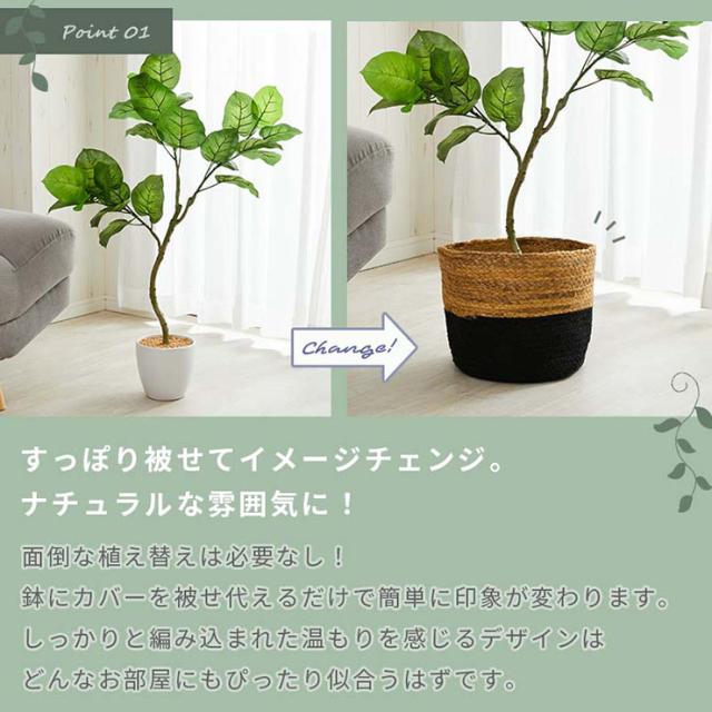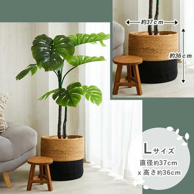 鉢カバー バスケット Lサイズ フーバー 直径37cmx高さ36cm プランターカバー おしゃれ 植木鉢カバー 10号 11号 大型 観葉植物 鉢 カゴ 丸型 折りたたみ 収納 コンパクト 麻 綿 シンプル アジアン雑貨