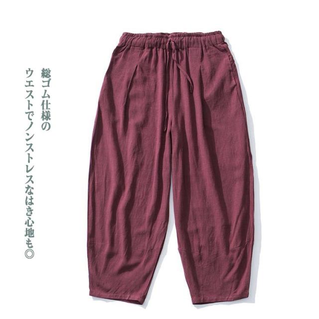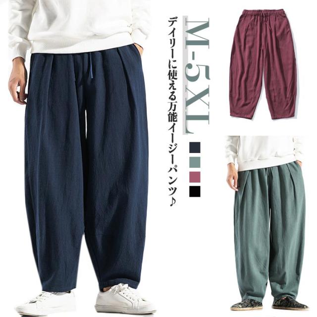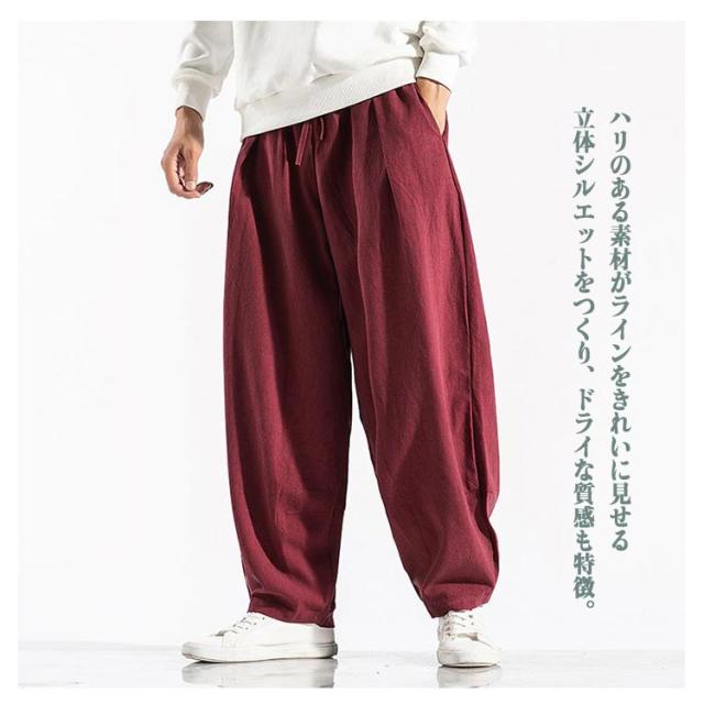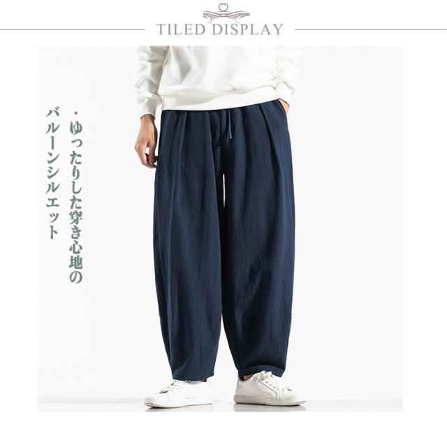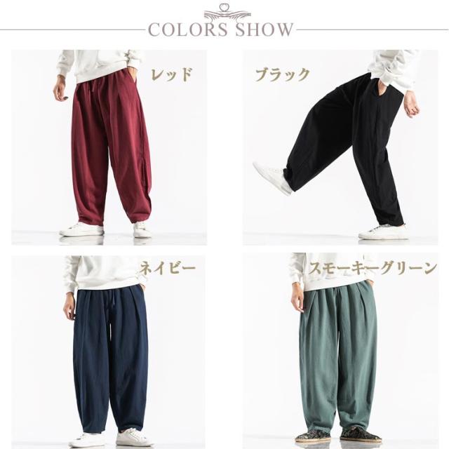 ワイドパンツ バルーンパンツ コクーンパンツ タックパンツ メンズ 綿 麻 ゆるパンツ ズボン ボトムス ポケットあり 大きいサイズ ゆったり 体型カバー ナチュラル パンツ 春 夏