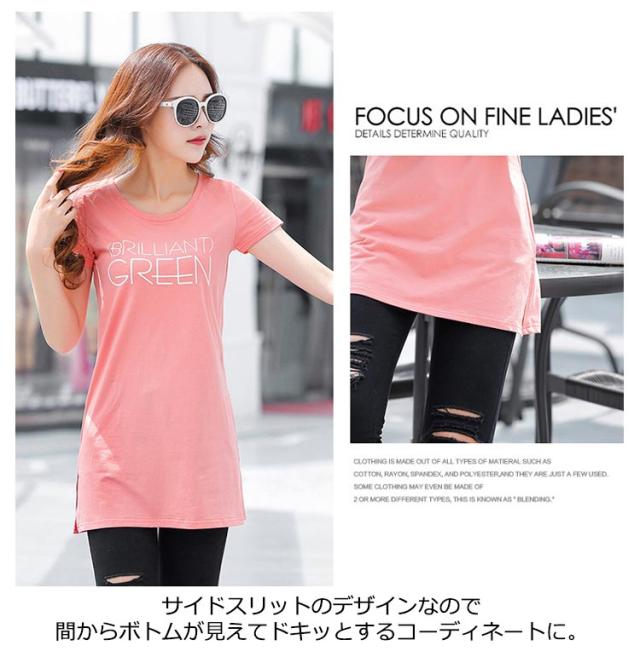ロングtシャツ tシャツ レディース プリントtシャツ ブラウス 大人かわいい スリット入り 可愛い 体型カバー 半袖 チュニック ヨガ 着?せ クルーネック 夏 トップス 大きいサイズ トップス サイドスリット ロング丈 通気性 綿 柔らかい ギフト 送料無料