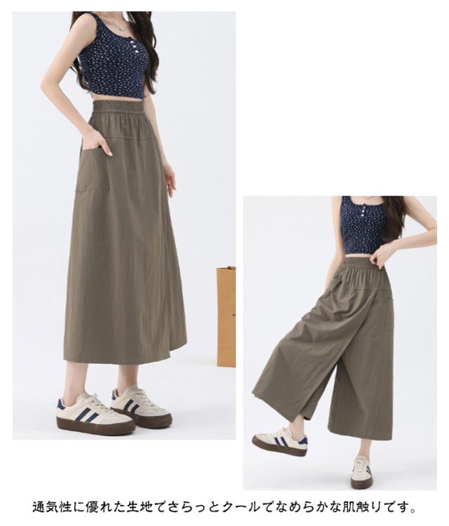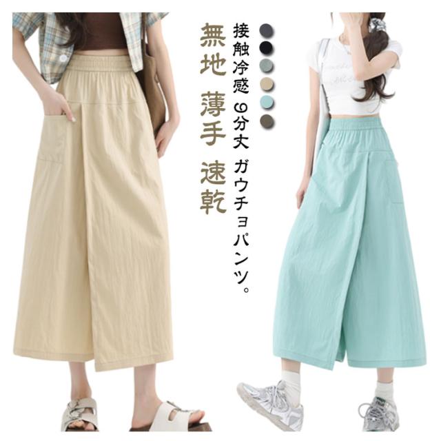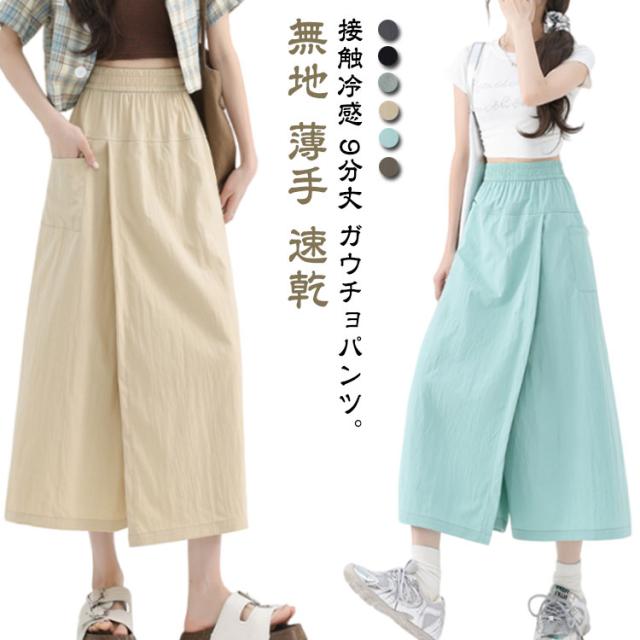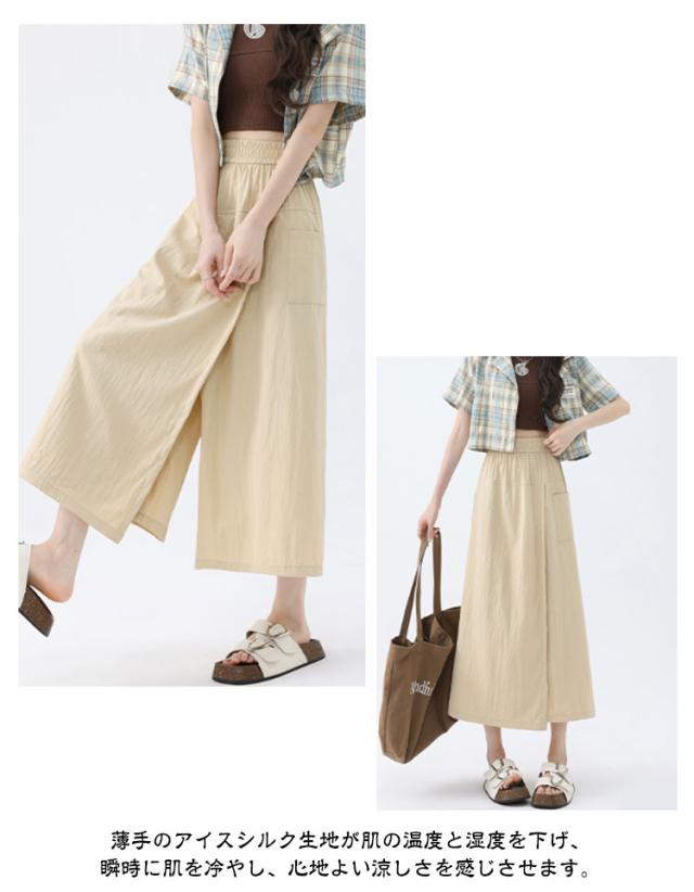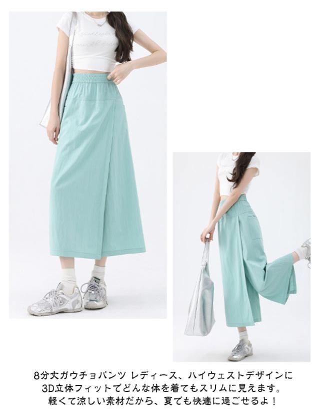 8分丈 ガウチョパンツ ゆったり キュロット レディース 接触冷感 ワイドパンツ 九分丈 冷感 パンツ スカートパンツ ハイウエスト ポケット付き 無地 薄手 速乾 涼しい スカーチョ カジュアル レイヤード 大きいサイズ オフィス 日常 アイスシルクパンツ 春 夏 送料無料