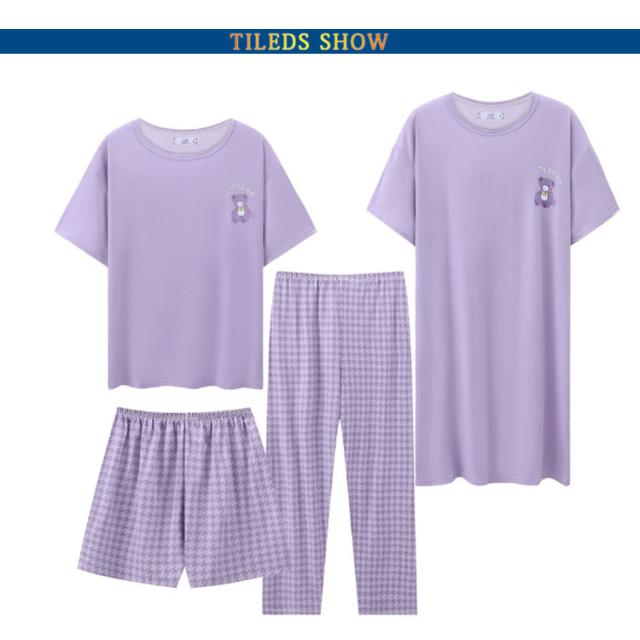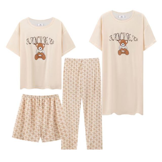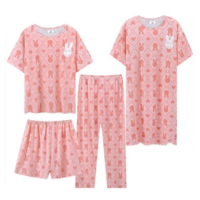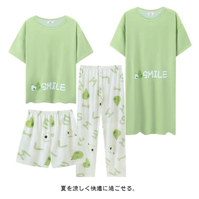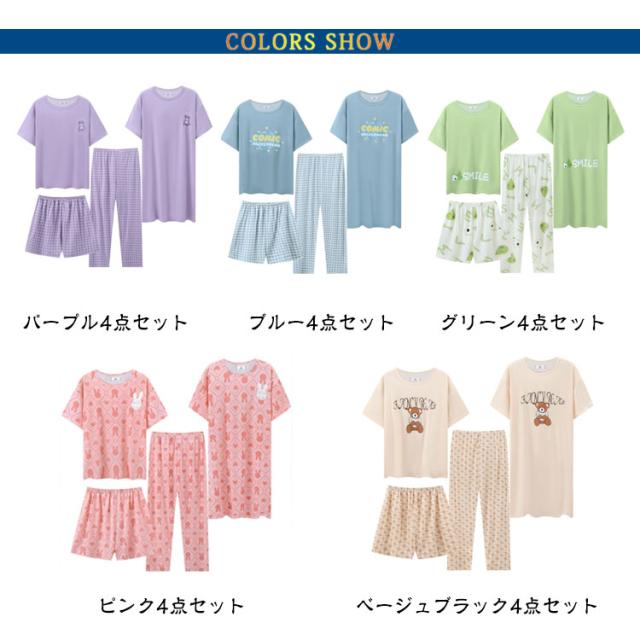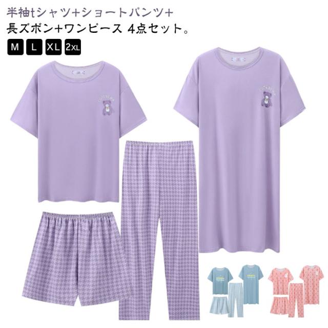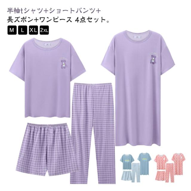 | 半袖tシャツ+ショートパンツ+長ズボン+ワンピース 4点セット。 おうち時間も可愛く♪着心地抜群なルームウェア 夏を涼しく快適に過ごせる。 | |