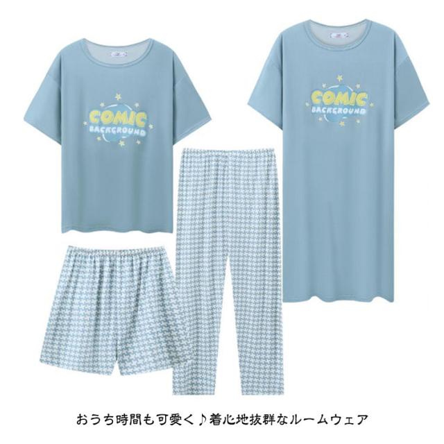 パジャマ レディース 夏用パジャマ 上下セット 半袖tシャツ ショートパンツ 長ズボン ワンピース 4点セット ルームウェア セットアップ ウエストゴム リラックス 女性 部屋着 寝間着 寝巻き ナイトウェア 大きいサイズ 送料無料 M-2XL