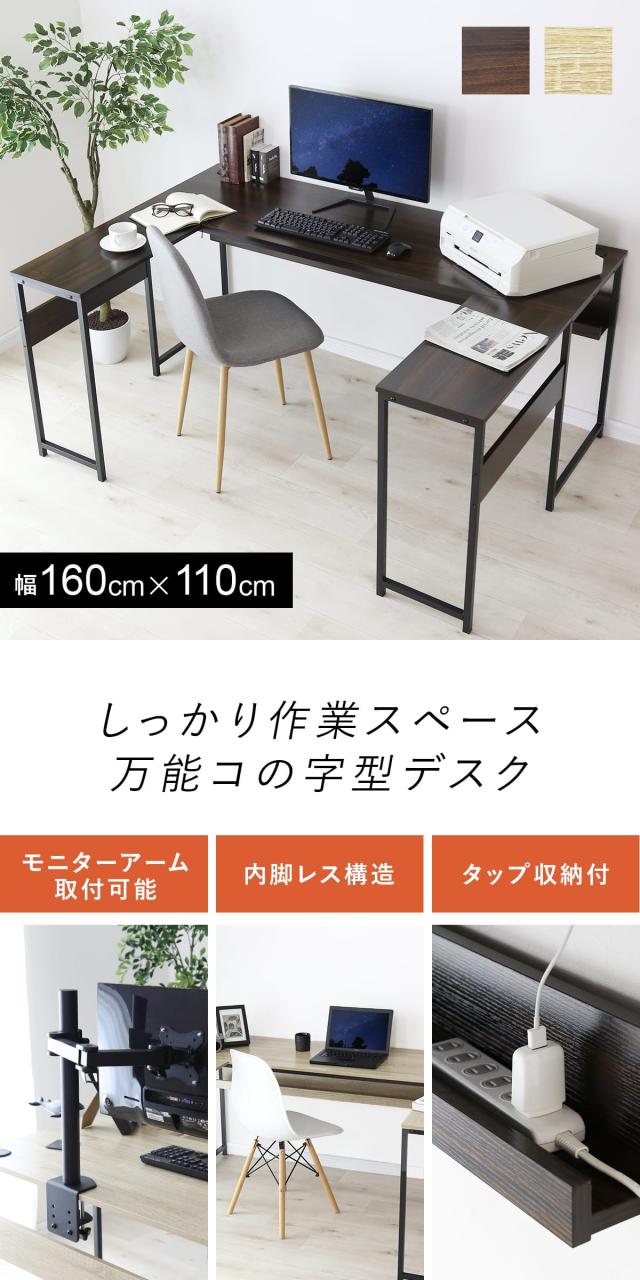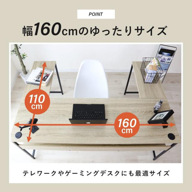 パソコンデスク デスク ワークデスク コーナーデスク サブデスク 両袖サブデスク コの字デスク 机 棚付き 収納 収納付き 幅160 木製 タップ収納付き 拡張 レプト おしゃれ 北欧 big_ki プレゼント テレワーク tm