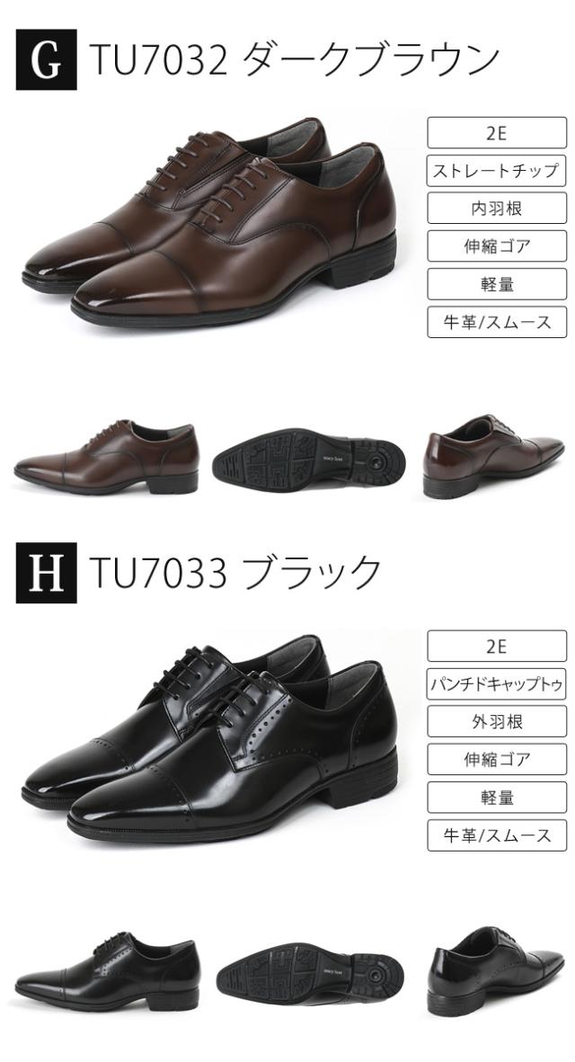 G-TU7032 ダークブラウン 2E 内羽根 伸縮ゴア 軽量 ストレートチップ